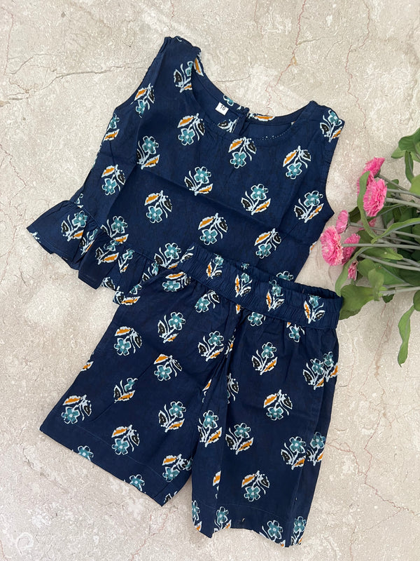 Navy Blossom - Frill top & Shorts Set 6m - 1 yr
